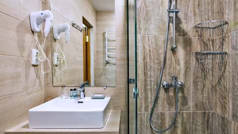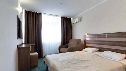 Площадь номера: 20 кв. м. В номере: двуспальная или две односпальные кровати, диван, кондиционер, телевизор, сейф, холодильник; санузел с душем, фен, мини парфюмерия. Номер с балконом, вид на парк. Дополнительных мест: 2 (раскладной диван). Размещение до 4 человек.