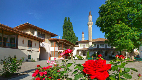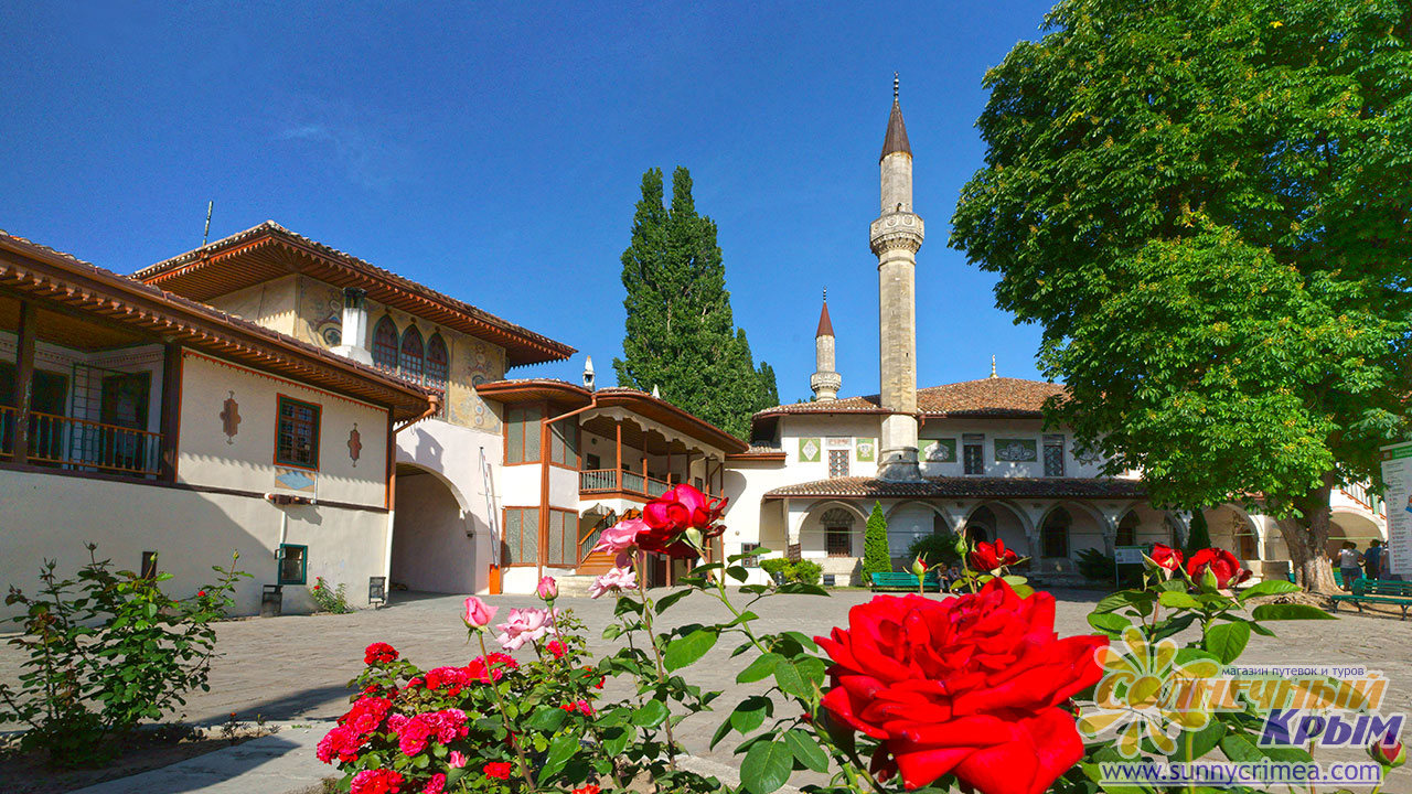 В самом «сердце» старой части Бахчисарая, на левом берегу реки Чурук-Су расположился чудесный образец крымскотатарского зодчества — дворец крымских ханов. Архитектурный стиль — османская архитектура XV-XVII веков. А главная идея — воплотить представление мусульманского рая на Земле. И воистину, слово «Бахчисарай» переводится с тюркских языков как «сад-дворец». Легкие сооружения, прекрасные росписи на стенах, тонкое кружево ажурных деревянных решеток, внутренние дворики с обилием зелени, цветущие розы и прохлада фонтанов — именно так должен выглядеть рай.