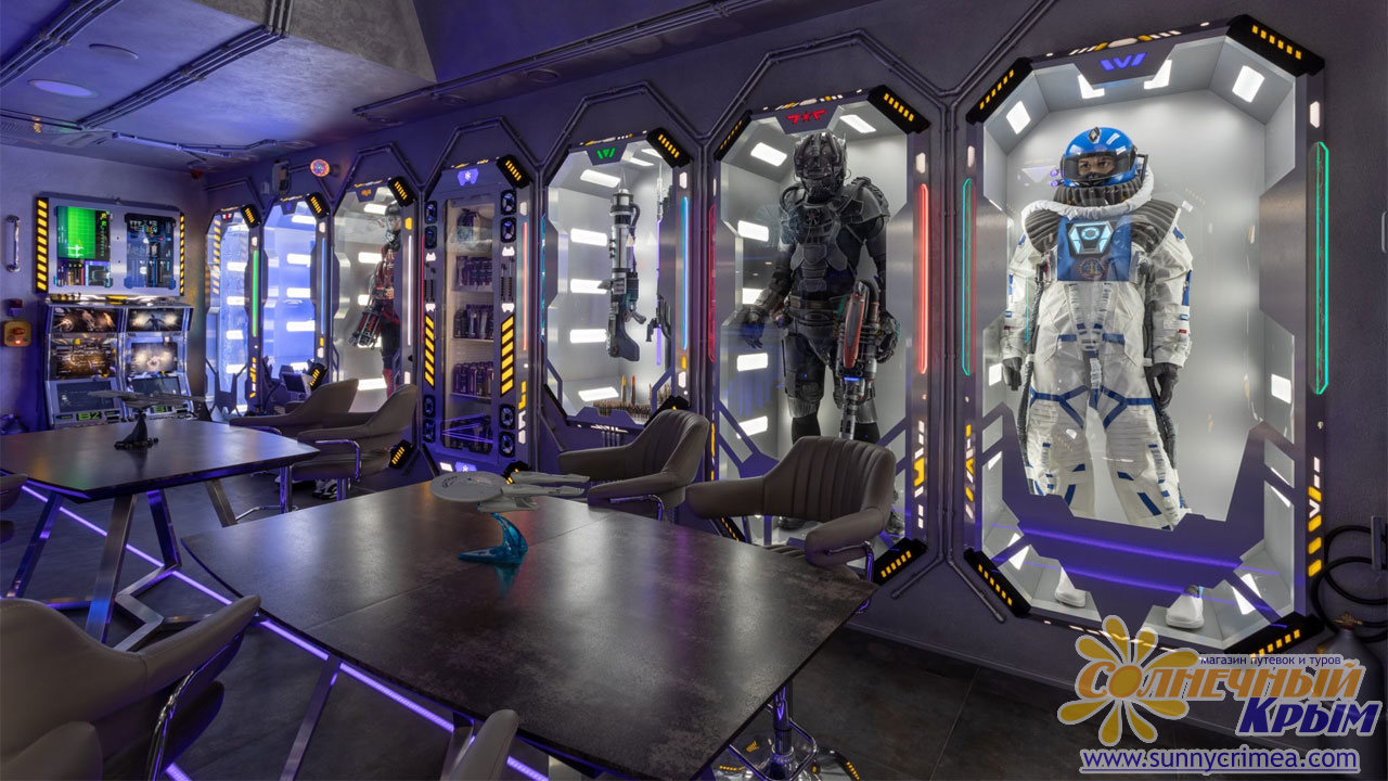Здесь каждый сможет ощутить себя настоящим астронавтом и отправиться в полет на космическом корабле в настоящих каютах, поучаствовать в космических боях на платформе виртуальной реальности, а также посетить космический бар и попробовать настоящую еду космонавтов. Можно поработать в настоящей космической научной лаборатории — проделать химические опыты и эксперименты под руководством ученого.