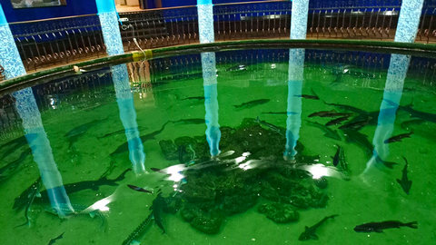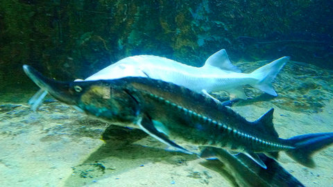 Черноморским обитателям посвящена экспозиция второго зала с центральным бассейном. В этом бассейне величественно плавают осетровые: белуги, осетры, севрюги, шипы и др. Некоторые из них, например, русский осетр, считаются редкими видами. А другие — белуга, шип, атлантический осетр и севрюга — находятся на грани исчезновения.