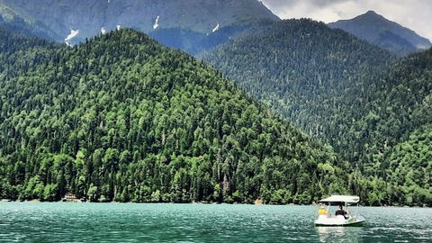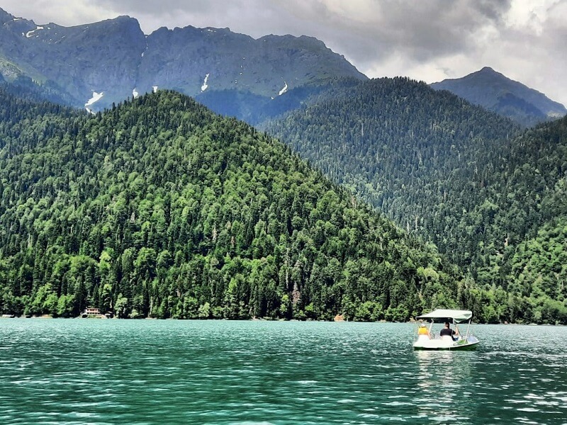 Озеро Рица — уникальный природный объект. Существуя вот уже больше 1000 лет, оно ни разу не замерзало, а температура воды в нем не поднимается выше +5—6°C. Чистейшая бирюзовая вода, пушистые горы и голубое небо — такое можно увидеть только в Абхазии.