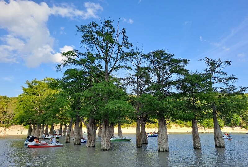 • Далее любуемся рощей болотных кипарисов, растущих прямо в воде озера Сукко, — необычных хвойных деревьев, хвоя которых становится оранжевой и опадает осенью. Природный феномен полон загадок: сложно представить, как деревья выживают в столь необычной среде, откуда вообще взялись кипарисы под Анапой.