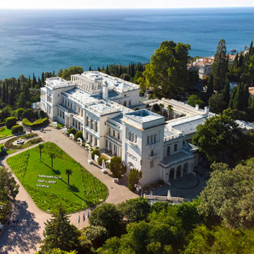 Экскурсия в Ливадийский дворец — летнюю резиденцию российского императора Николая II и место проведения Ялтинской конференции 1945 года: Большой белый дворец, внутренние покои, осмотр памятника лидерам «большой тройки» и памятника Александру III, знакомство с парком и Крестовоздвиженским храмом.
